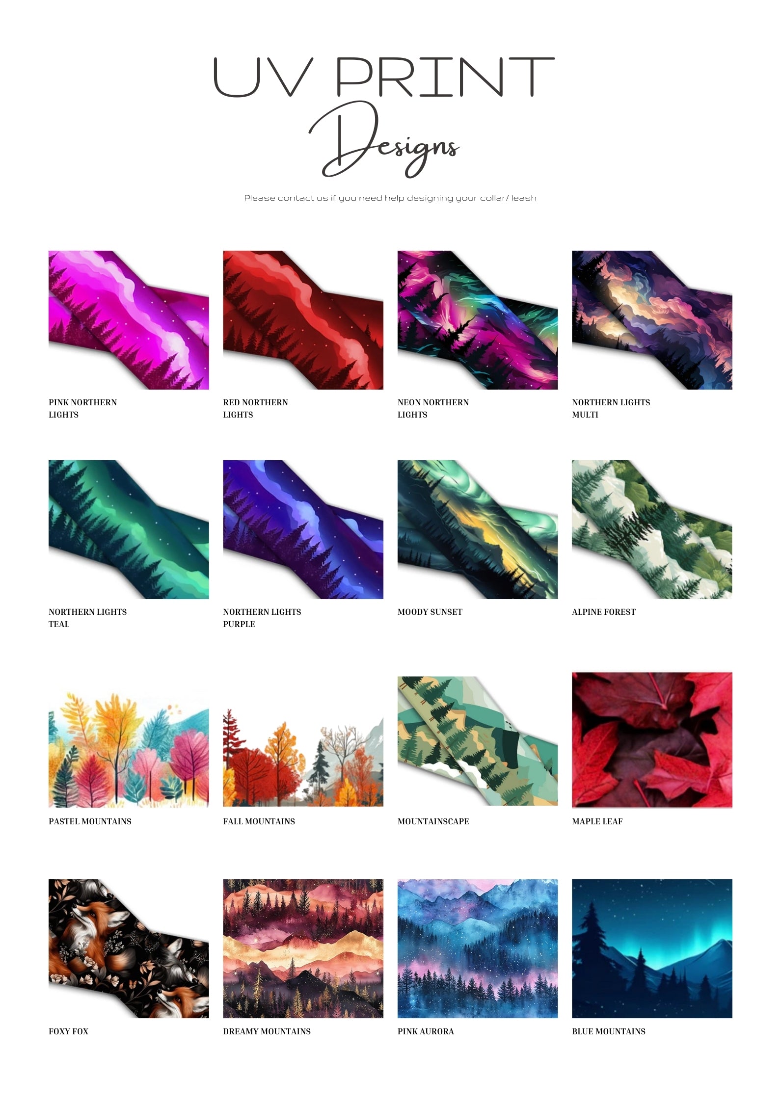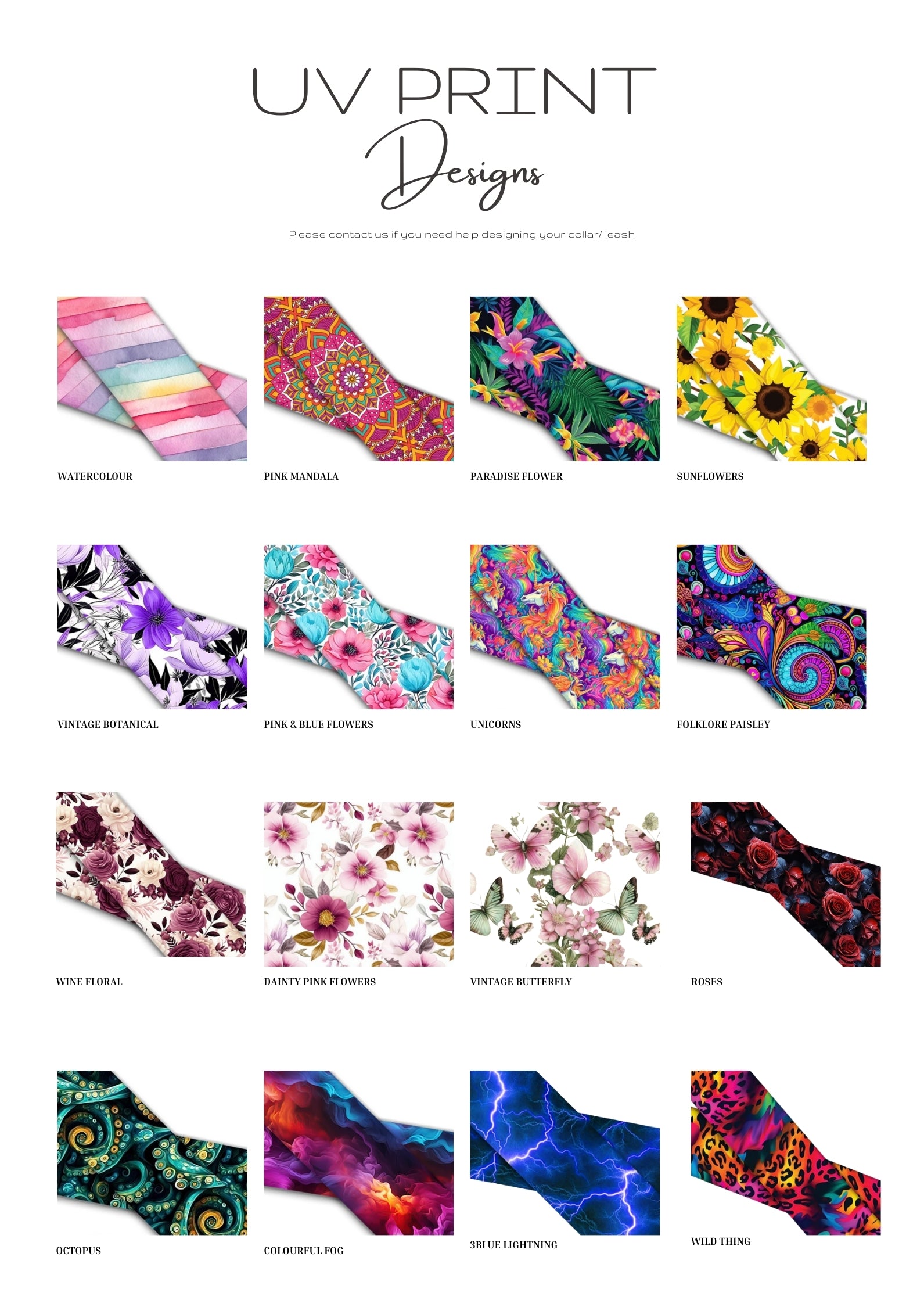 These collars are made out of 1.5" Super Heavy UV printed Beta Biothane tapered to 1" SH Biothane.